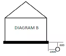 Where the building does not span a wastewater pipe, a horizontal distance greater than 1 meter from the outside diameter of the pipe to the nearest structure is maintained (Diagram B).